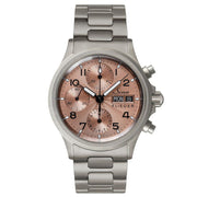 SINN have spared no effort to keep all the colours and metal tones in harmony which starts with the Bicompax silver matte sub-dials matched with the anthracite electroplated dial. The hands for the hours, minutes and stopwatch seconds are rhodium plated and lined with luminous paint and share the anthracite tone, still allowing exceptional legibility but retaining an overall aesthetic of harmony.