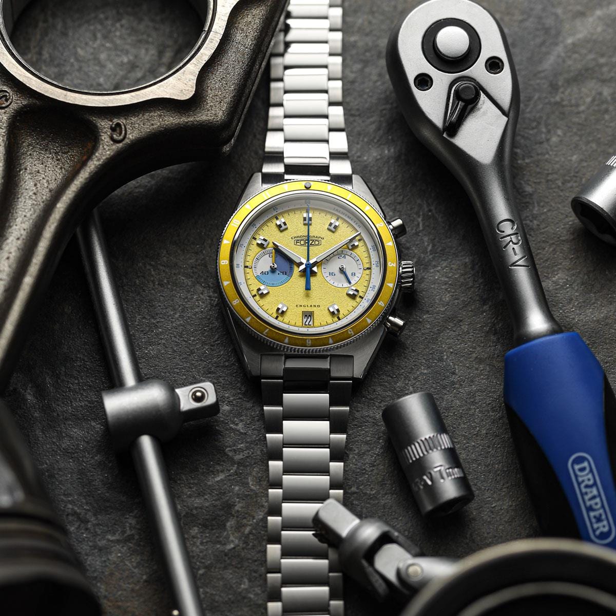 Due to popular demand, the Drive King is back and better than ever with a fully mechanical movement. Inspired by iconic motoring colours of the late ’60s this range is perfect for anyone looking for a welcome pop of colour to their collection.