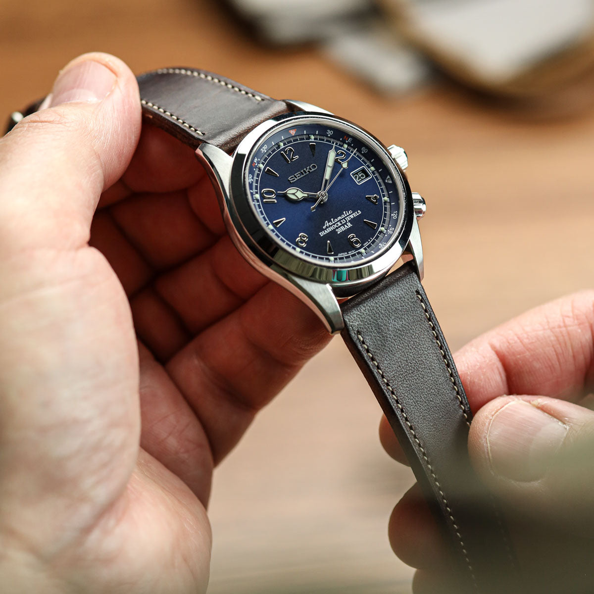 The Hatherley Badalassi Carlo is a leather strap handmade in Valencia, Spain from vegetable-tanned top-grain leather. Each strap is assembled to the highest standards by a team of experienced artisan