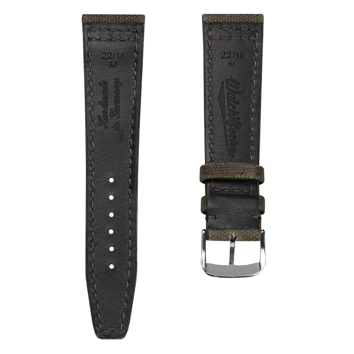 The WatchGecko Two-Piece Canvas Watch Strap is a rugged yet stylish option, designed for durability and everyday wear. Handmade in Germany, this strap is crafted from premium Martexin™ Original Wax canvas, a time-tested material made in the USA. Featuring a vintage-inspired waxed finish, the strap develops character over time, offering a unique patina and a distinctive worn-in look.