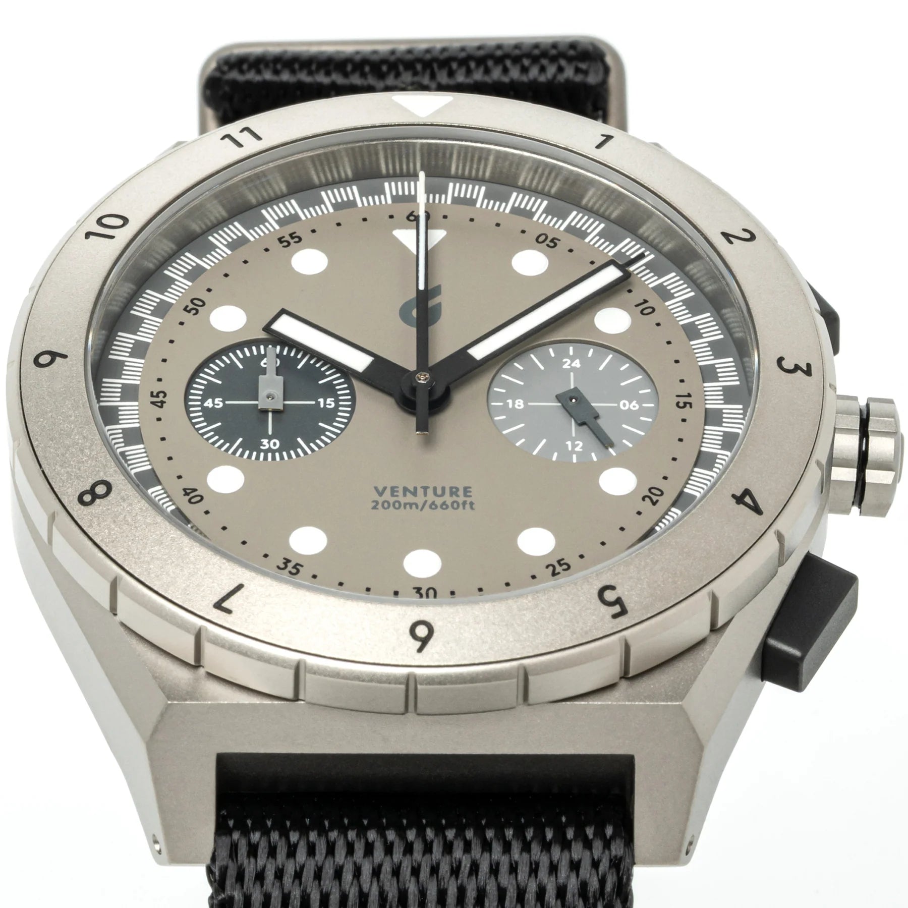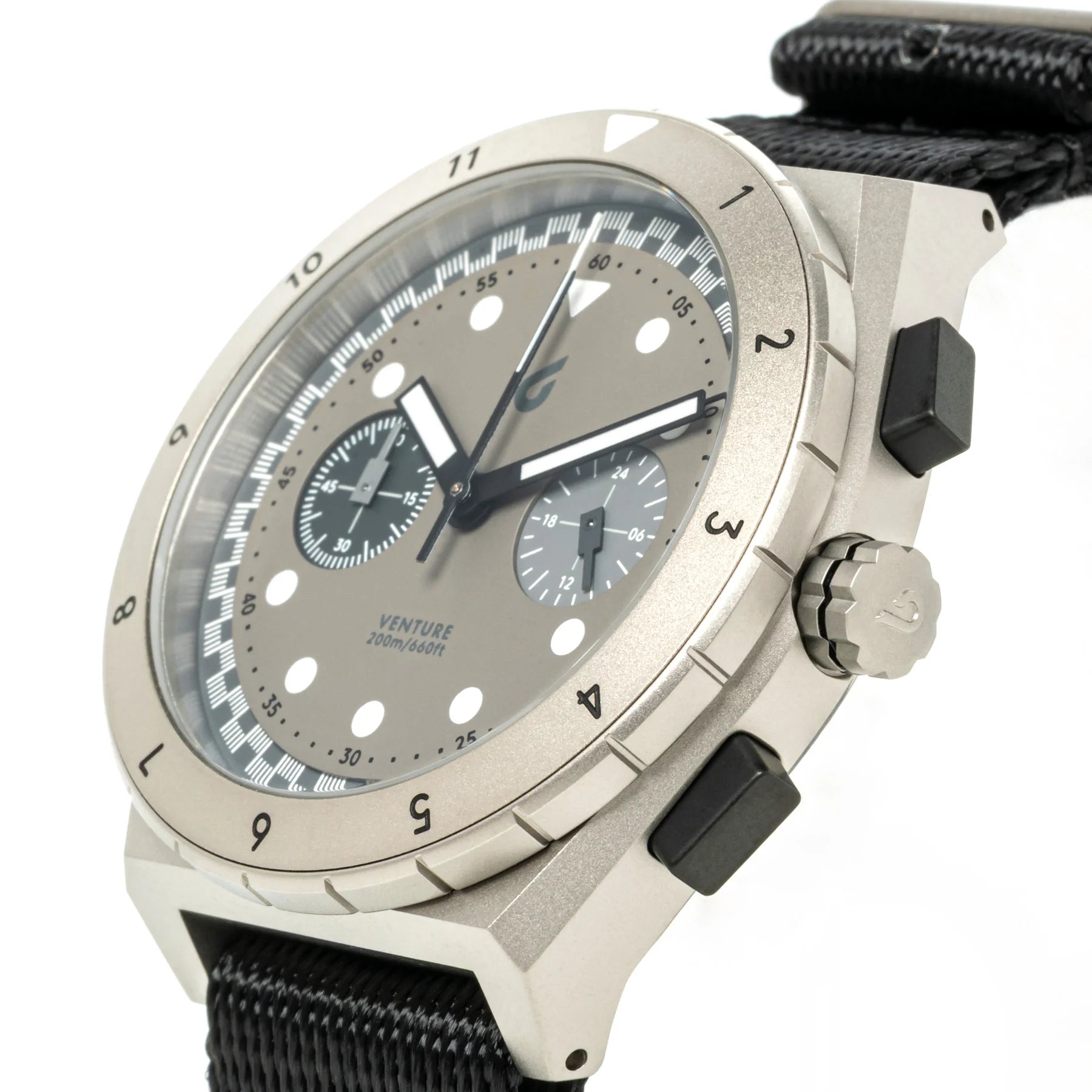 The Venture Velo Mono was born from the same road that shaped our Ride to Conquer Cancer watch: long climbs, quiet mornings, and riders pushing themselves for a cause that mattered. That original design carried stories of courage and determination, and the Velo Mono carries that spirit forward in a new, understated form.