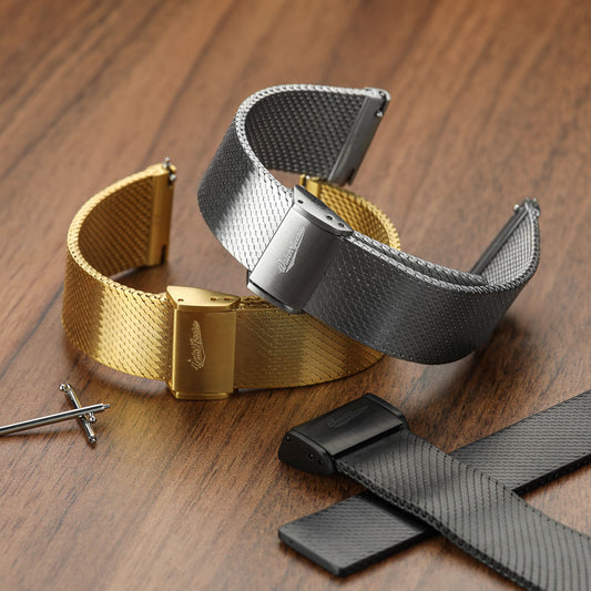 Crafted from precision-woven 316-grade stainless steel, the strap features a finely balanced mesh construction rooted in the tradition of Milanese bracelets. This style is prized for its flexibility, breathability, and ability to sit comfortably on the wrist, even during extended wear.
