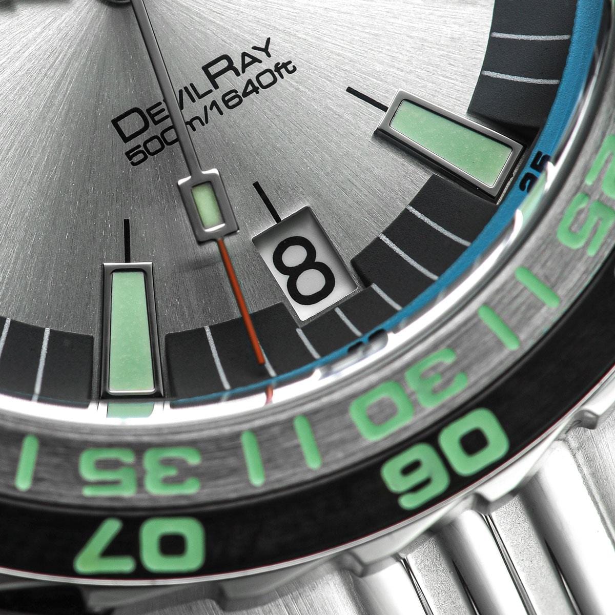 What’s more, each DevilRay is individually tested to a water resistance rating of an impressive 500m, and features a double-domed, anti-reflective sapphire crystal for superb scratch-resistance.