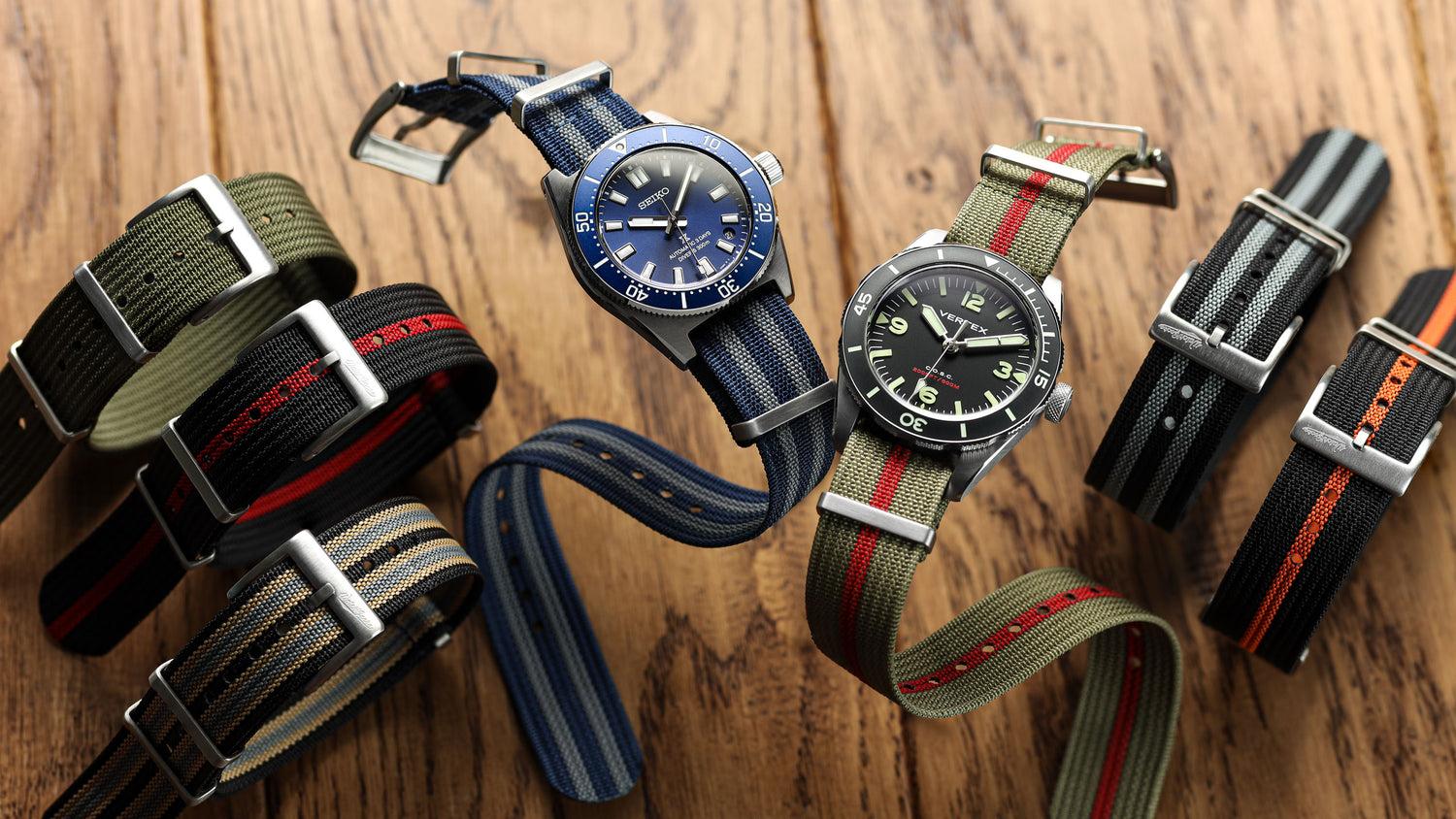 Our collection features a variety of tones and colours, each meticulously designed to enhance the unique character of your vintage watch. Among these, the new Bond Stripe in black and gold stands out, offering a perfect match for watches with vintage yellow lume, now also available with gold hardware.